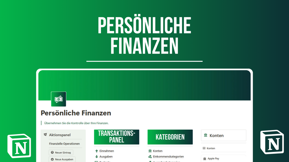 Unsere Notion-Vorlage für Persönliche Finanzen hilft dir, deine Einnahmen, Ausgaben und Budgets effizient zu organisieren. So behältst du jederzeit die Kontrolle über dein Geld und kannst deine Finanzen mühelos verwalten.